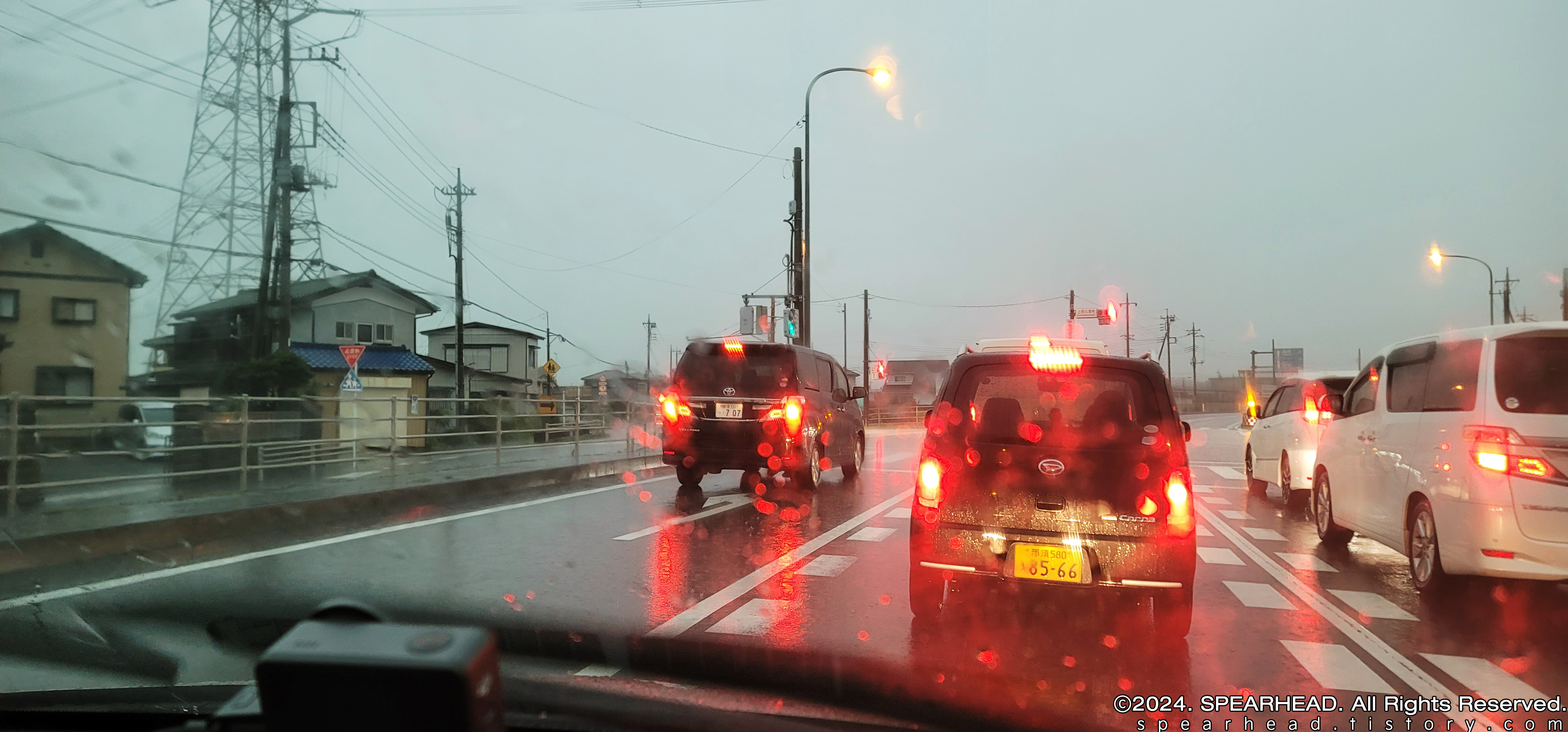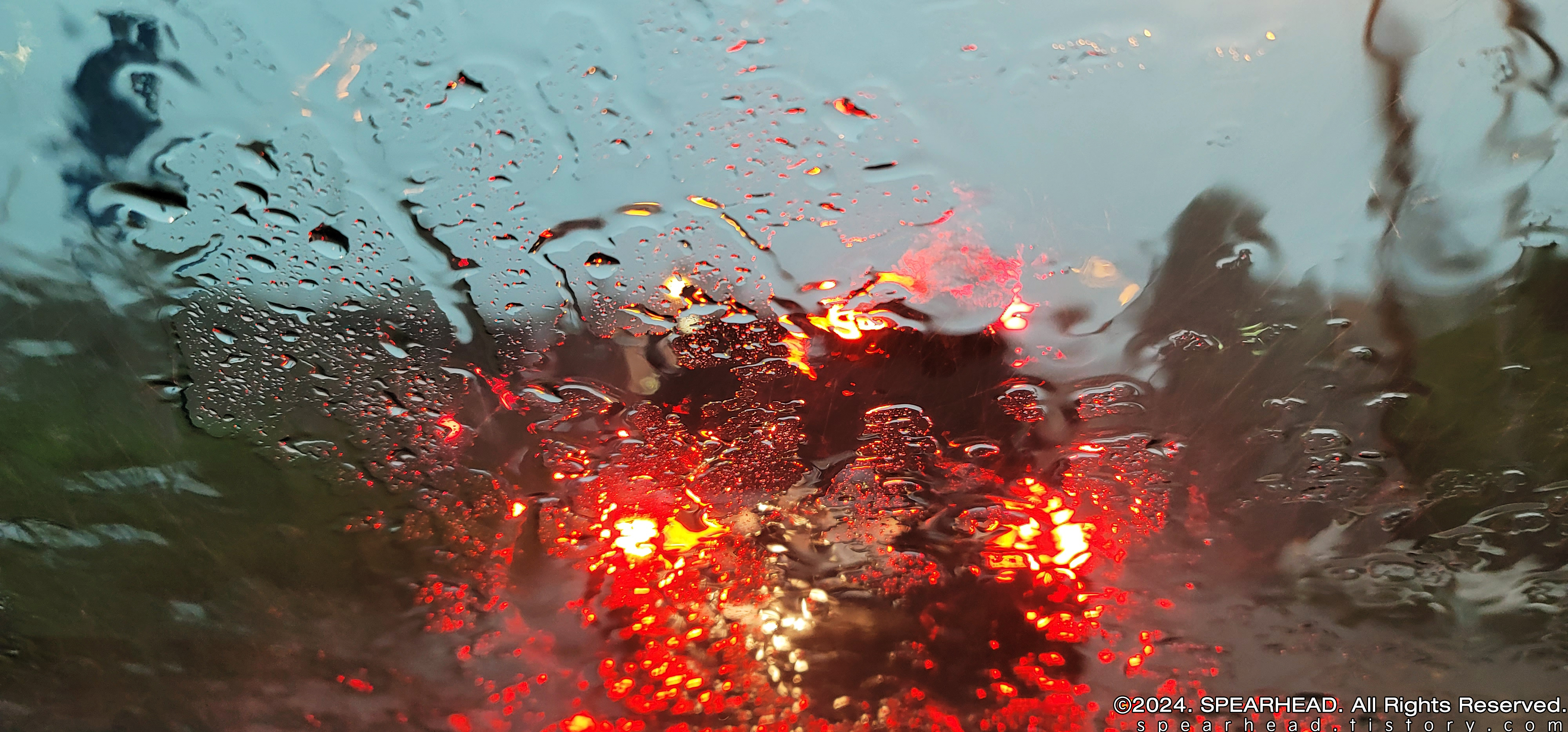 폭우 속을 저 알파드의 미등만 쫒아가면서 운전을 하는 고행을 겪습니다.