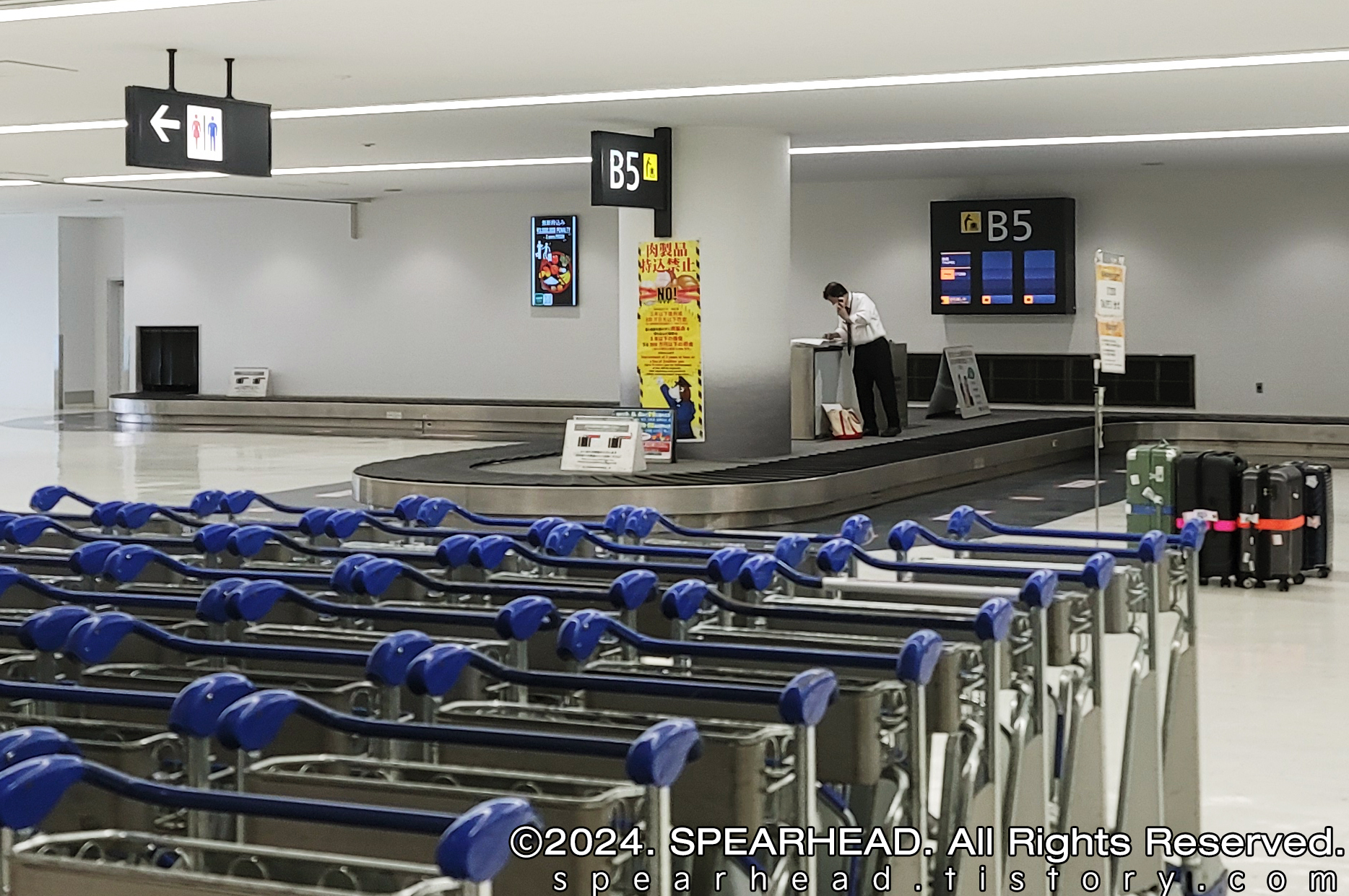 수하물을 수령하자마자 바로 뒤에 있던 ATM에서 현금을 출금합니다.