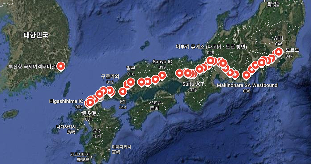 원래는 파주 통일대교부터 시작해서 도쿄 에도바시까지 제 차로 직접 운전해서 이동하는