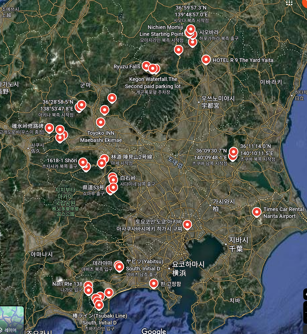 다음 일정은 도치기현 소재의 고갯길들을 돌고 군마현으로 이동하는 일정입니다.